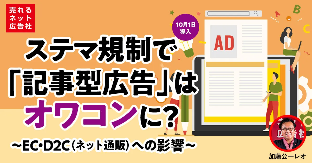 10月1日以降は、アフィリエイトやインフルエンサーマーケティング、レビュー活用などの施策において、より慎重な対応が求められるようになるだけでなく、第三者の体験談を装った「記事型広告」は“オワコン”と化す可能性が高い。「知らなかった」では済まされない、ステマ規制のポイントとEC・D2C(ネット通販)事業者に与える影響を解説する。