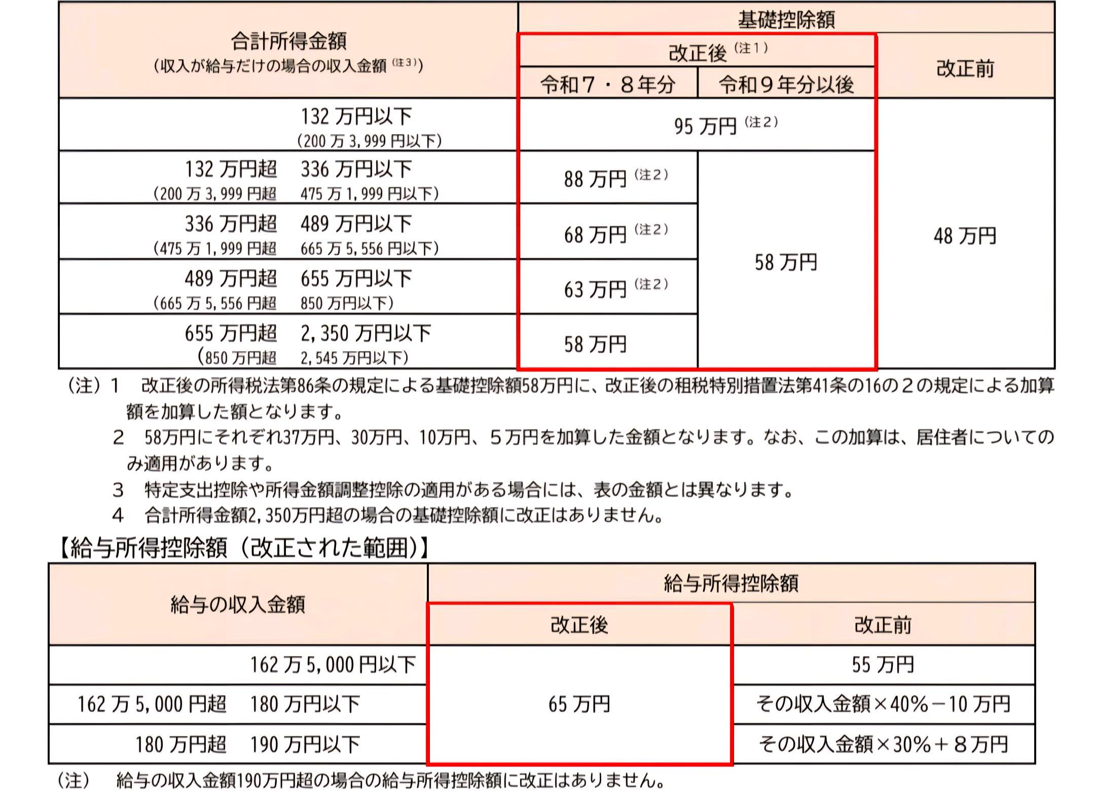 去年まで一律48万円でしたが令和7年度より改正され控除額が大きくなりました。【上表】