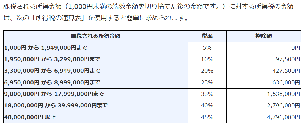 所得税は超過累進課税になっており、課税所得の金額が大きいほど税率が高くなります。